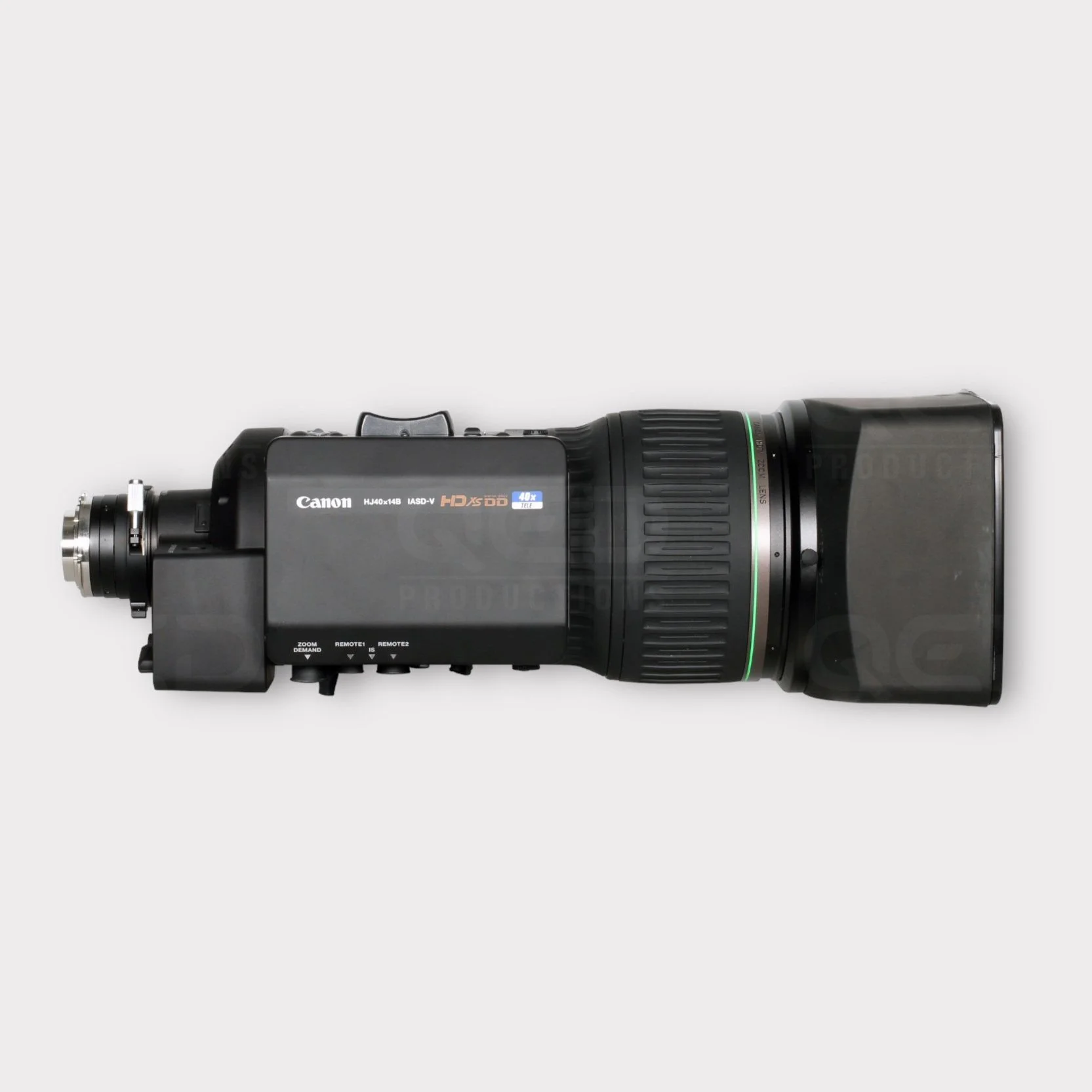 The highly telephoto HJ40x14B represents the pinnacle of Canon portable high definition EFP lens designs. This lens is intended for producers and broadcasters engaged in documentary, natural history, and the many other challenging location productions that seek superb image capture over very considerable distances. This lens embodies a superb built-in image stabilization system that has become industry renowned. Aerial shooting, sports and entertainment coverage, portable acquisition in arduous terrain and under dynamic environmental situations (heavy winds) – are all superbly supported by is stalwart HD lenses.